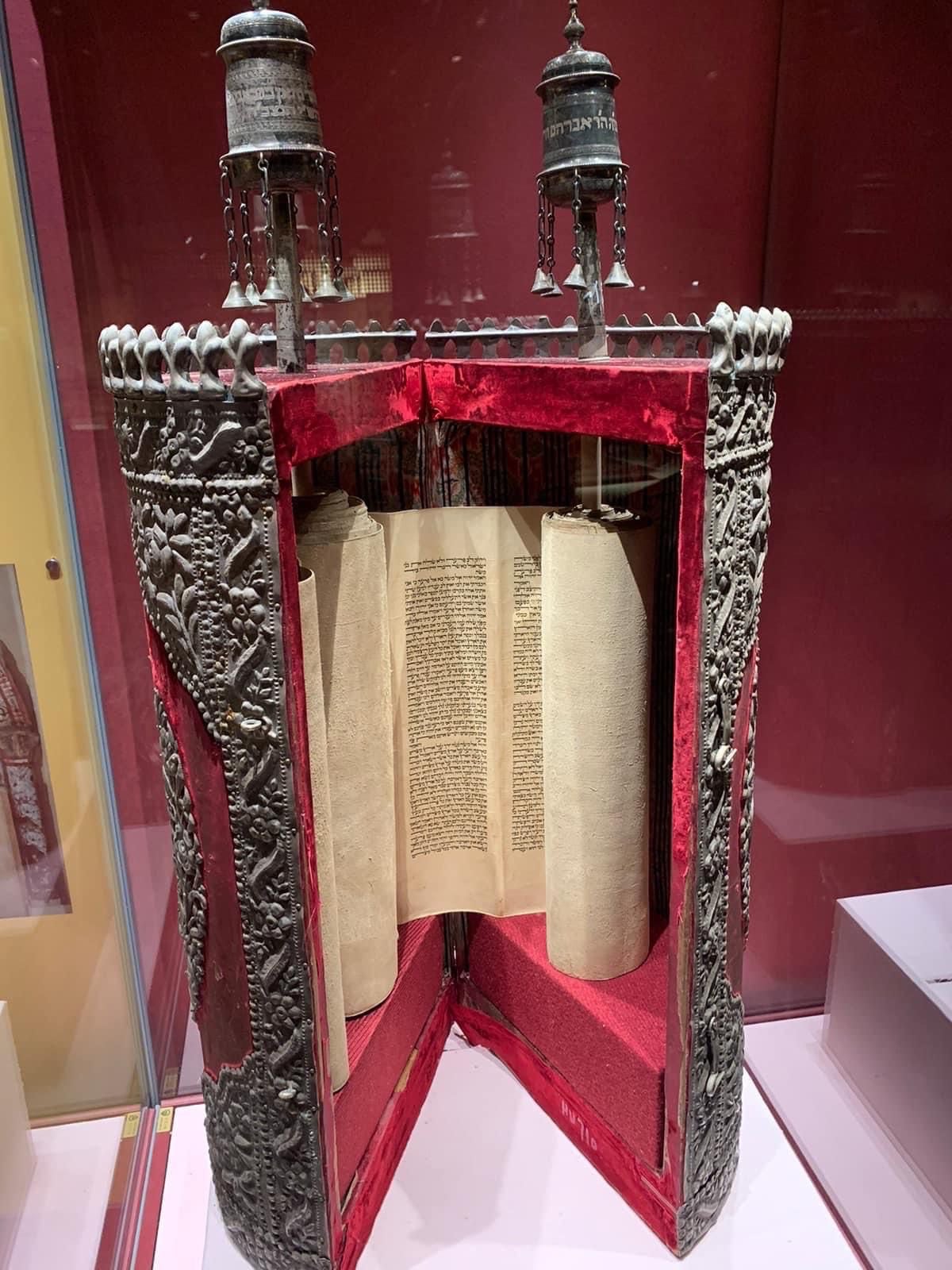 ومن بين القطع الدينية النادرة كذلك، صندوق حفظ لفائف التوراة، المؤرخ في سبتمبر 1444 ميلادية، والمصنوع من الخشب والفضة والقطيفة، ويُعرف باسم “صندوق التوراة” أو “صندوق الحكمة”.