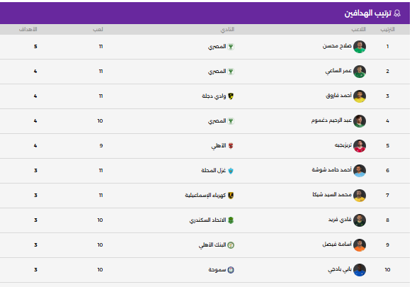 انفرد صلاح محسن مهاجم المصرى البورسعيدى بتصدر جدول ترتيب هدافى مسابقة الدورى المصرى الممتاز برصيد 5 أهداف عقب إقامة اليوم الأحد 26 – 10 – 2025 ثلاث مباريات ضمن الجولة الثانية عشرة من عمر المسابقة، حيث التقى سيراميكا مع كهرباء الإسماعيلية، وواجه الإسماعيلى فريق فاركو، واستضاف فريق طلائع الجيش نظيره زد.
