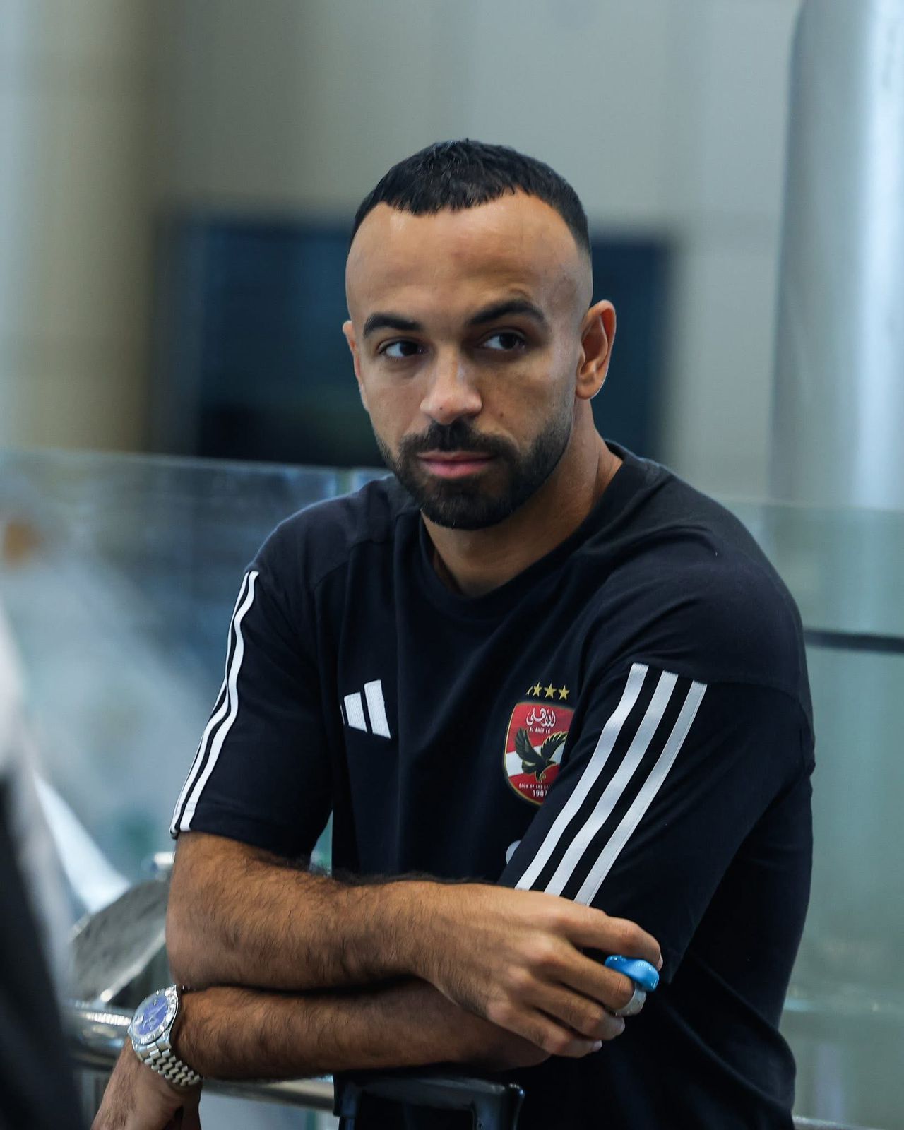 ظهرت علامات الحزن على وجه نجوم الأهلى داخل مطار القاهرة قبل السفر إلى الإمارات للمشاركة فى بطولة السوبر المصري ؛ وذلك بسبب التعادل الذى حققه الفريق مع المصري البورسعيدى أمس فى بطولة الدوري.