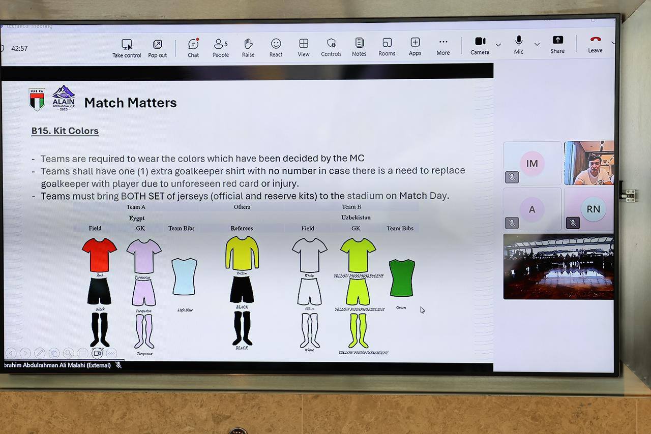 وحضر الاجتماع الفنى ممثلا عن مصر كلا من مينا سامح إداري المنتخب و عبدالله سيد مدير المهمات، وأقيم الاجتماع الفنى باستاد هزاع بن زايد بمدينة العين والمستضيف لمباراة مصر وأوزبكستان.