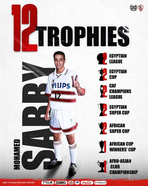 استعرضت الصفحة الرسمية لنادى الزمالك بطولات الراحل محمد صبرى نجم الزمالك السابق الذى وافته المنية اليوم الجمعة،حيث نشرت صورة معلقة عليها:"محمد صبري المدفعجي صاحب الـ 12 بطولة وداعًا محمد صبري".