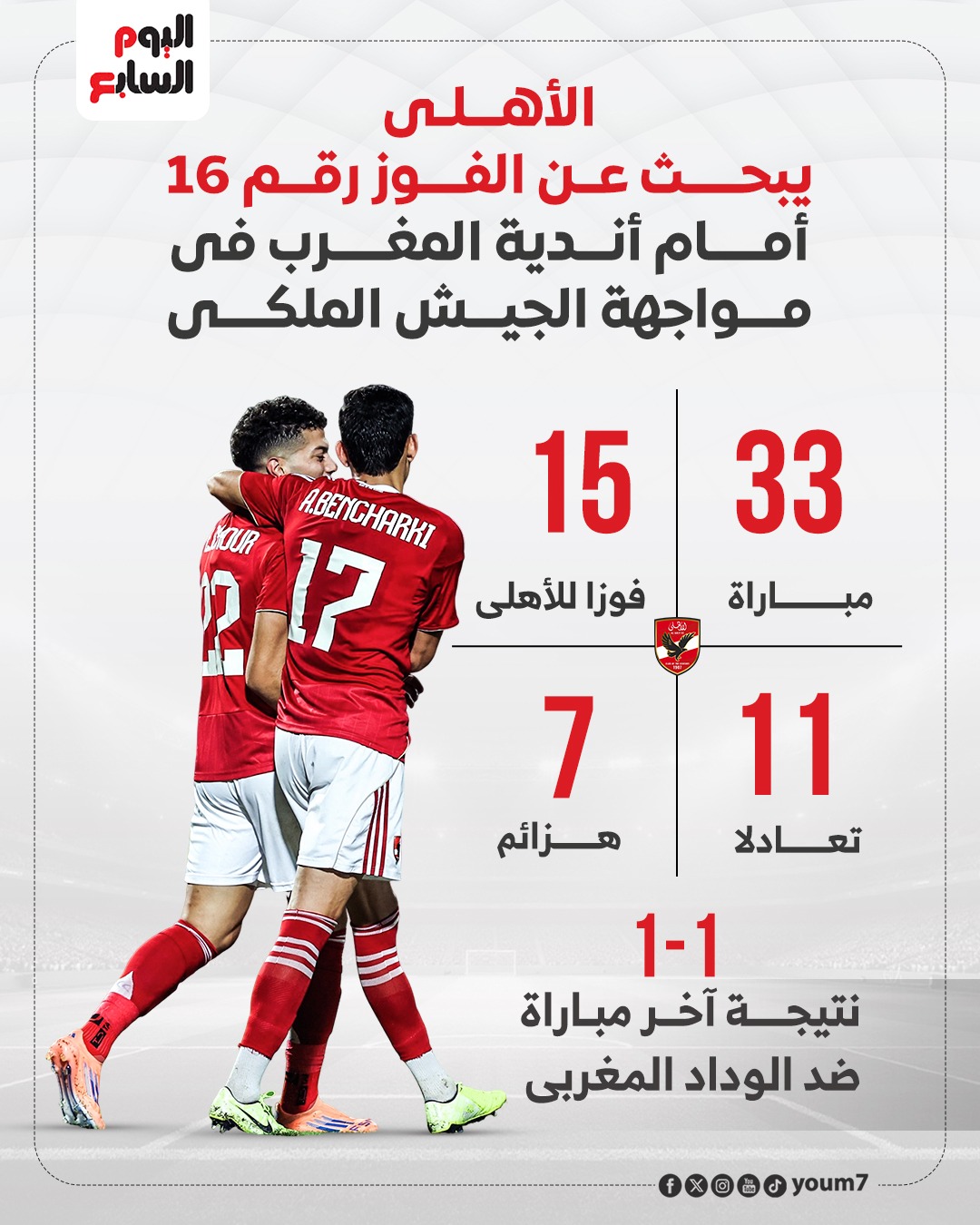 يحل فريق الأهلى ضيفاً ثقيلاً على الجيش الملكي المغربي مساء اليوم، الجمعة، ضمن منافسات الجولة الثانية بالمجموعة الثانية ببطولة دوري أبطال أفريقيا. على صعيد تاريخ مواجهات الأهلي أمام الأندية المغربية في مختلف البطولات الأفريقية، فقد خاض الفريق الأحمر 33 مباراة أمام أندية المغرب مع سبعة أندية مغربية وهي: الحليب «كلاس» والرجاء البيضاوي والجيش الملكي والوداد البيضاوي والدفاع الحسني والمغرب التطواني ونهضة بركان ، نجح خلالها فى تحقيق 15 انتصارًا، مقابل 11 مباراة انتهت بالتعادل، بينها مناسبتان حسمهما الأهلي بركلات الترجيح، بينما تعرّض الفريق لـ 7 هزائم فقط.