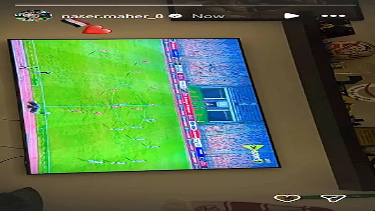 ونشر ناصر ماهر صورة لشاشة تلفزيون أثناء متابعة مباراة مصر ونيجيريا، عبر خاصية "القصص القصيرة" بحسابه الرسمي على موقع "إنستجرام"، وأرفقها برمز تعبيري لعلم مصر.