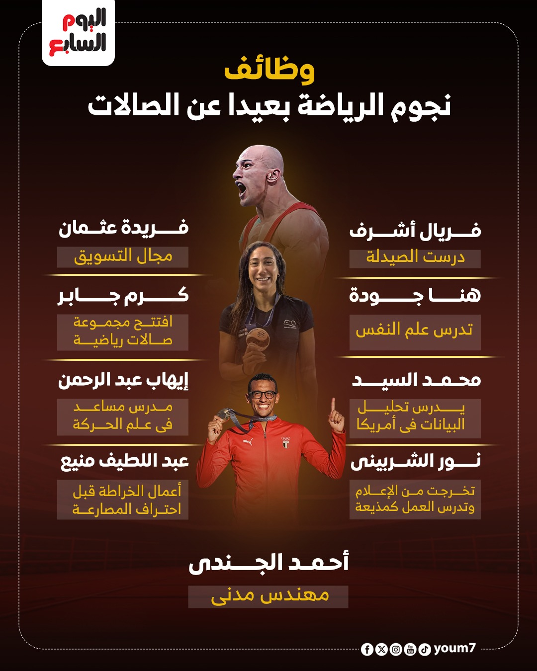 ونرصد في السطور التالية أبرز وظائف نجوم الألعاب الأخرى بعيدا عن الصالات. 1- أحمد الجندى .. مهندس مدنى