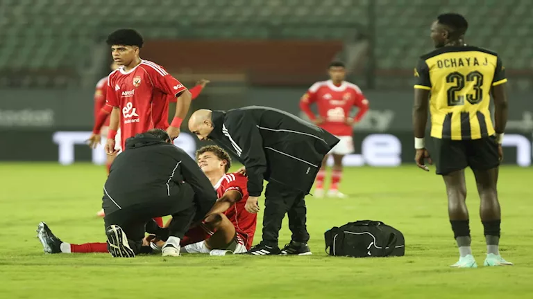 تعرض حمزة عبد الكريم، لاعب الفريق الأول لكرة القدم بالنادي الأهلي، للإصابة خلال منتصف الشوط الأول من مباراة المقاولون العرب، المقامة حاليا.