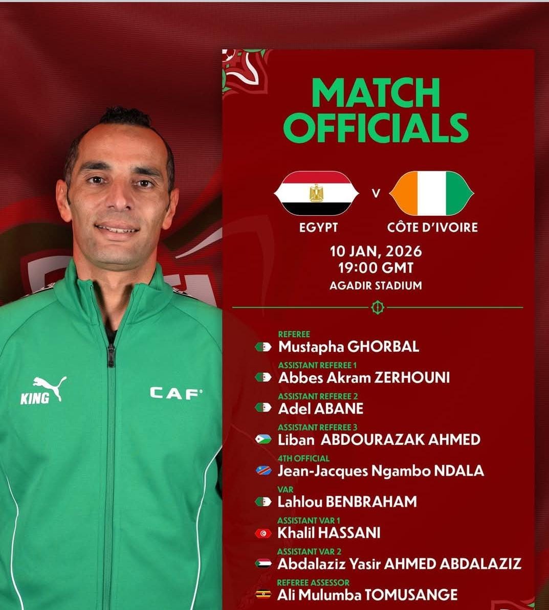 ويعد هذا الظهور الأول له في مباريات منتخب مصر منذ أن أدار مواجهة منتخب الفراعنة أمام نظيره السنغالي في إياب الصعود لكأس العالم 2022 والتي أقيمت بالعاصمة السنغالية داكار، ونجح منتخب السنغال في الفوز بركلات الترجيح والحصول على تأشيرة الصعود للمونديال قطر على حساب الفراعنة بركلات الترجيح.
