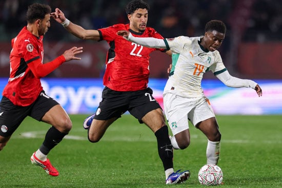 مرت 75 دقيقة من عمر مباراة منتخب مصر وكوت ديفوار على ملعب أدرار بالمغرب، بتقدم منتخب مصر بثلاثة أهداف مقابل هدفين ، سجل لمنتخب مصر عمر مرموش ورامى ربيعة ومحمد صلاح فى الدقائق 4 و32 و52 من عمر اللقاء، بينما جاء هدفى كوت ديفوار فى الدقيقة 40 من خطأ لأحمد فتوح، ثم ديوى فى الدقيقة 73.