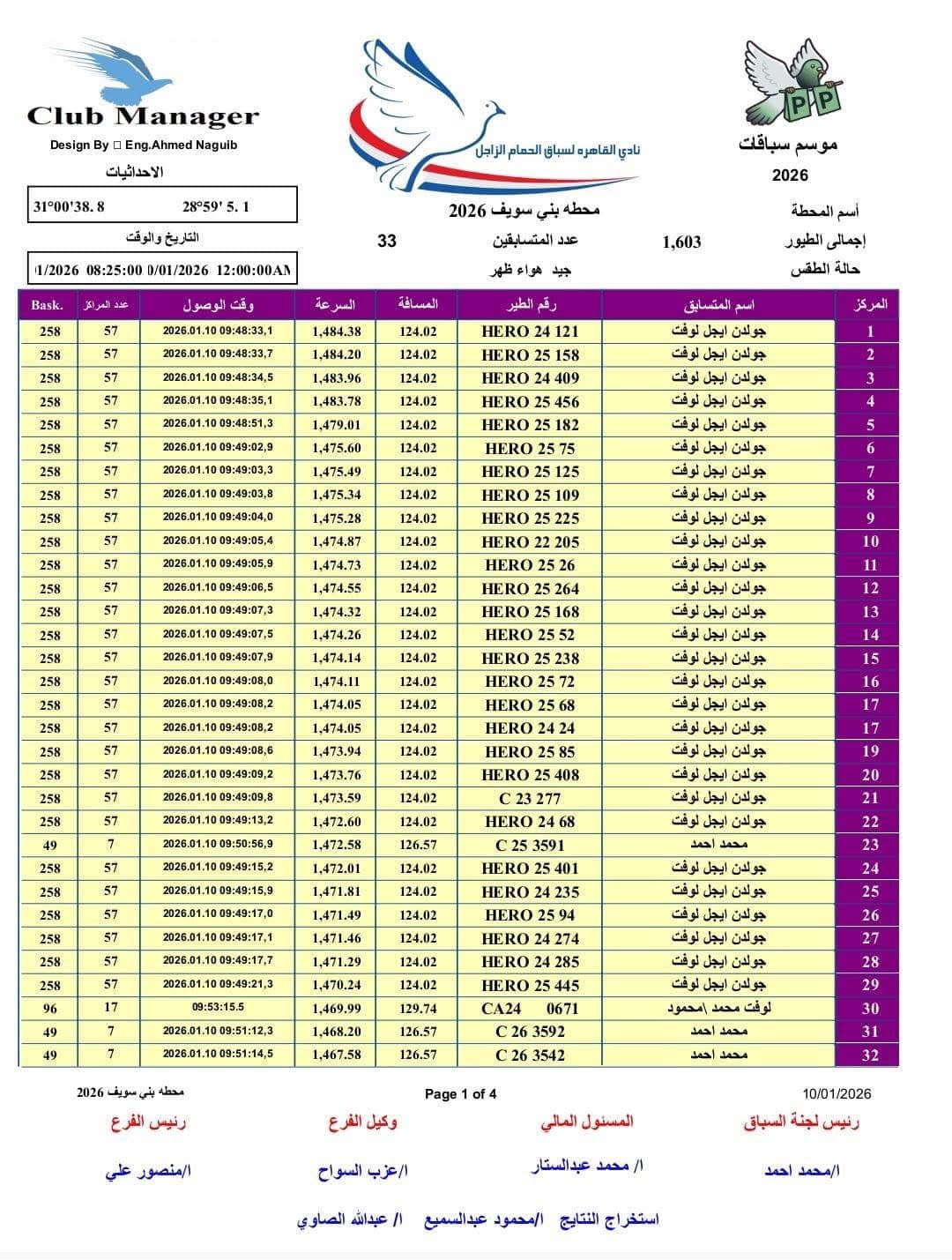 حيث نظم نادى القاهرة سباق الحمام الزاجل بمشاركة 1600 طائرا، فكان نقطة الانطلاق محافظة بنى سويف حيث شارك فى السباق 33 متسابقا، فيما حافظ المتسابق ياسر الخوانكى على الصدارة، بتتويجه بالمركز الأول مكرر22 مرة بسرعة تصل إلى 1465 مترًا فى الدقيقة الواحدة أى ما يعادل كيلو ونصف الكيلو متر فى الدقيقة تقريبا.