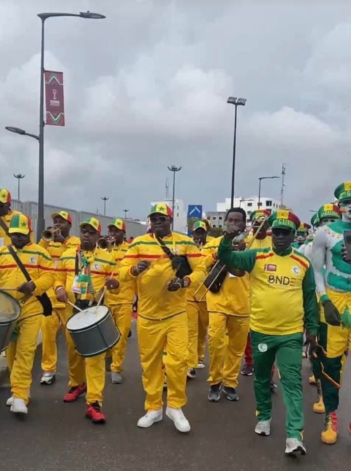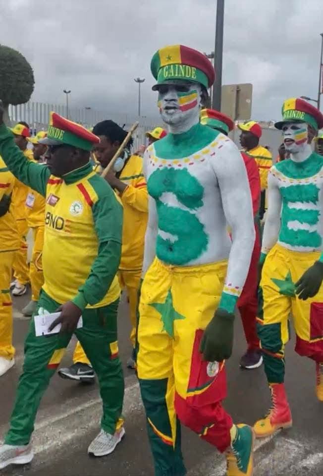 توافد الجمهور السنغالى الى مدرجات ستاد أبن بطوطة بمدينة طنجة المغربية لمساندة منتخبهم أمام منتخب مصر في نصف نهائي بطولة كأس الأمم الأفريقية في مقدمتهم الفرقة السنغالية التى تقود مدرجات السنغال.