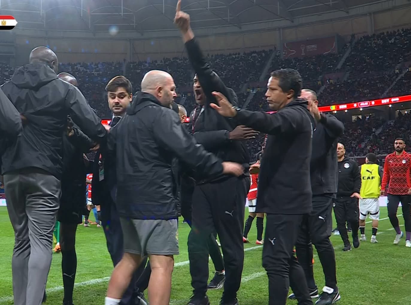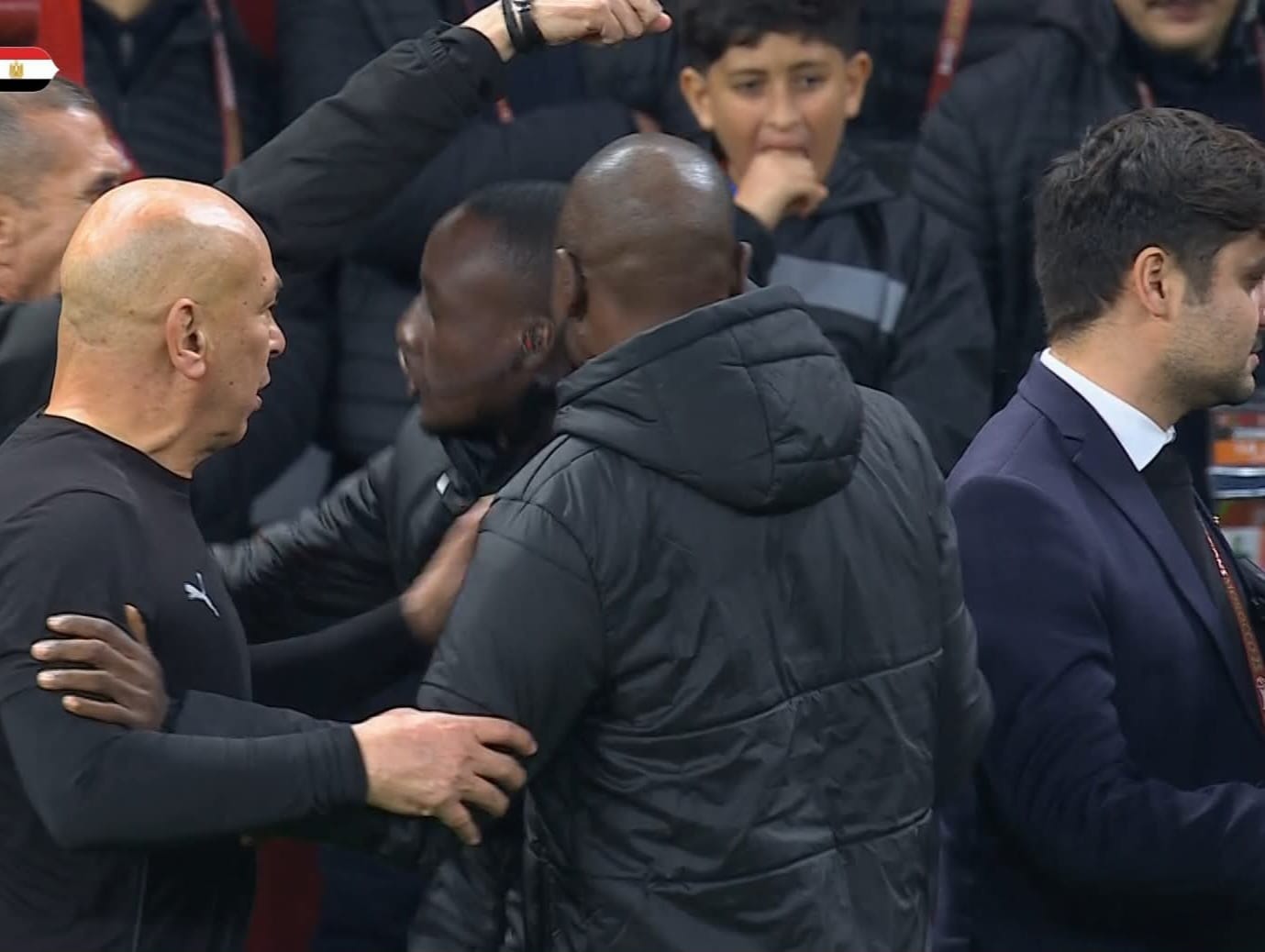 ويأتي الخلاف بسبب دخول بابي ثياو المنطقة الفنية الخاصة بمنتخب مصر وسرعان ما تدخل حسام حسن المدير الفني للفراعنة لفض الاشتباك بين الطرفين.