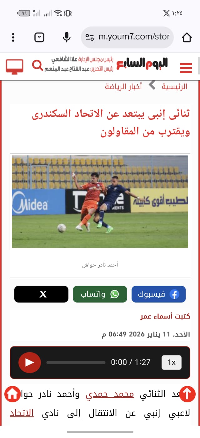 وكان اليوم السابع قد كشف في وقت سابق، ابتعاد الثنائي محمد حمدي وأحمد نادر حواش لاعبي إنبي عن الانتقال إلى نادي الاتحاد السكندري خلال فترة الانتقالات الشتوية الجارية، بسبب الاختلاف بين الناديين على التفاصيل المالية وتغير الاتفاق المسبق بينهما من قبل النادي البترولي.