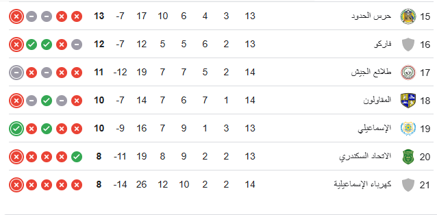 وجاء ترتيب جدول الدوري المصري قبل استئناف المباريات بعد انتهاء التوقف كالتالي: