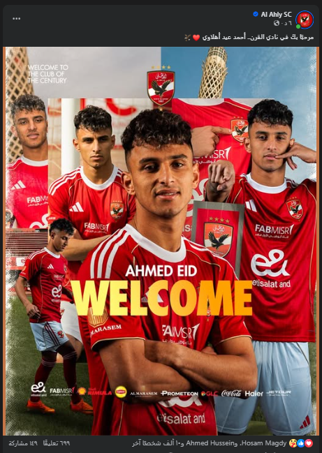 الأهلى يعلن عن ضم أحمد عيد رسميا: مرحبًا بك في نادي القرن