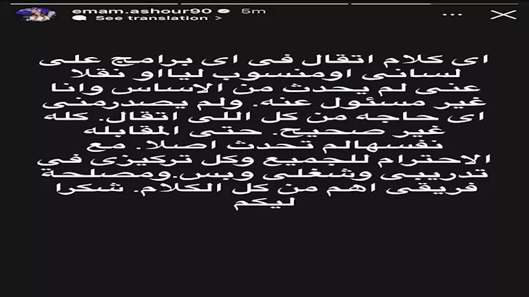 واختتم إمام عاشور تصريحاته قائلاً: "كل تركيزي في تدريبي وع عملي فقط، ومصلحة فريقي أهم من كل الكلام، شكرًا لكم."