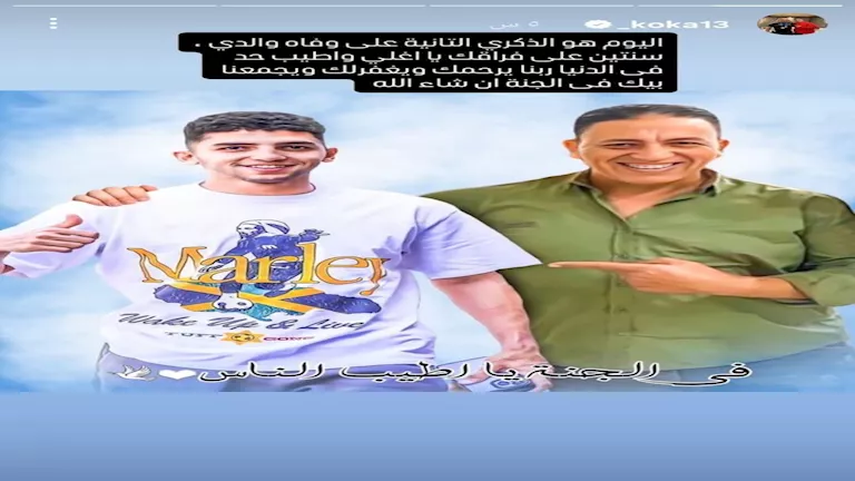 ونشر كوكا عبر حسابه الرسمي بموقع التواصل الإجتماعي "إنستجرام"، صورة والده وأرفق بها تعليق: "اليوم هو الذكرى الثانية على وفاة والدي، سنتين على فراقك يا أغلي وأطيب حد في الدنيا".