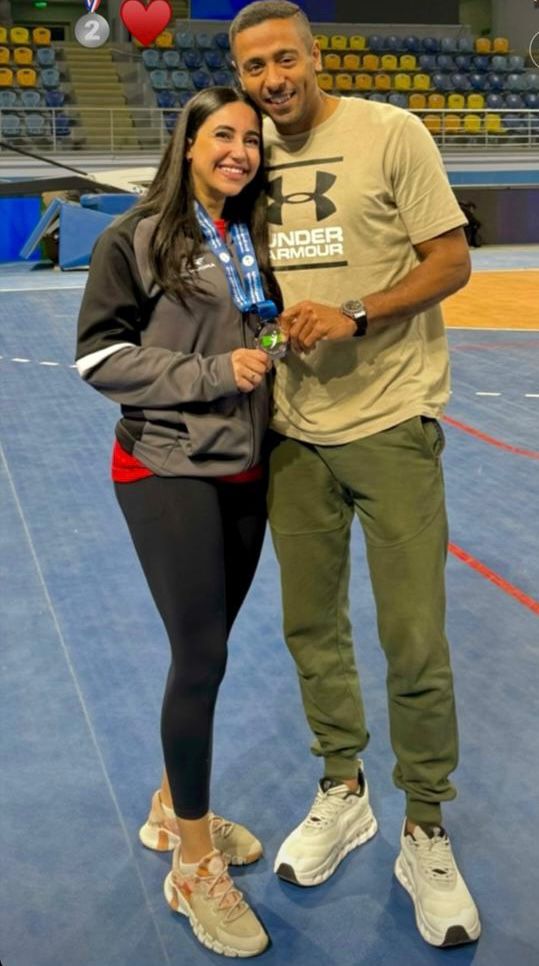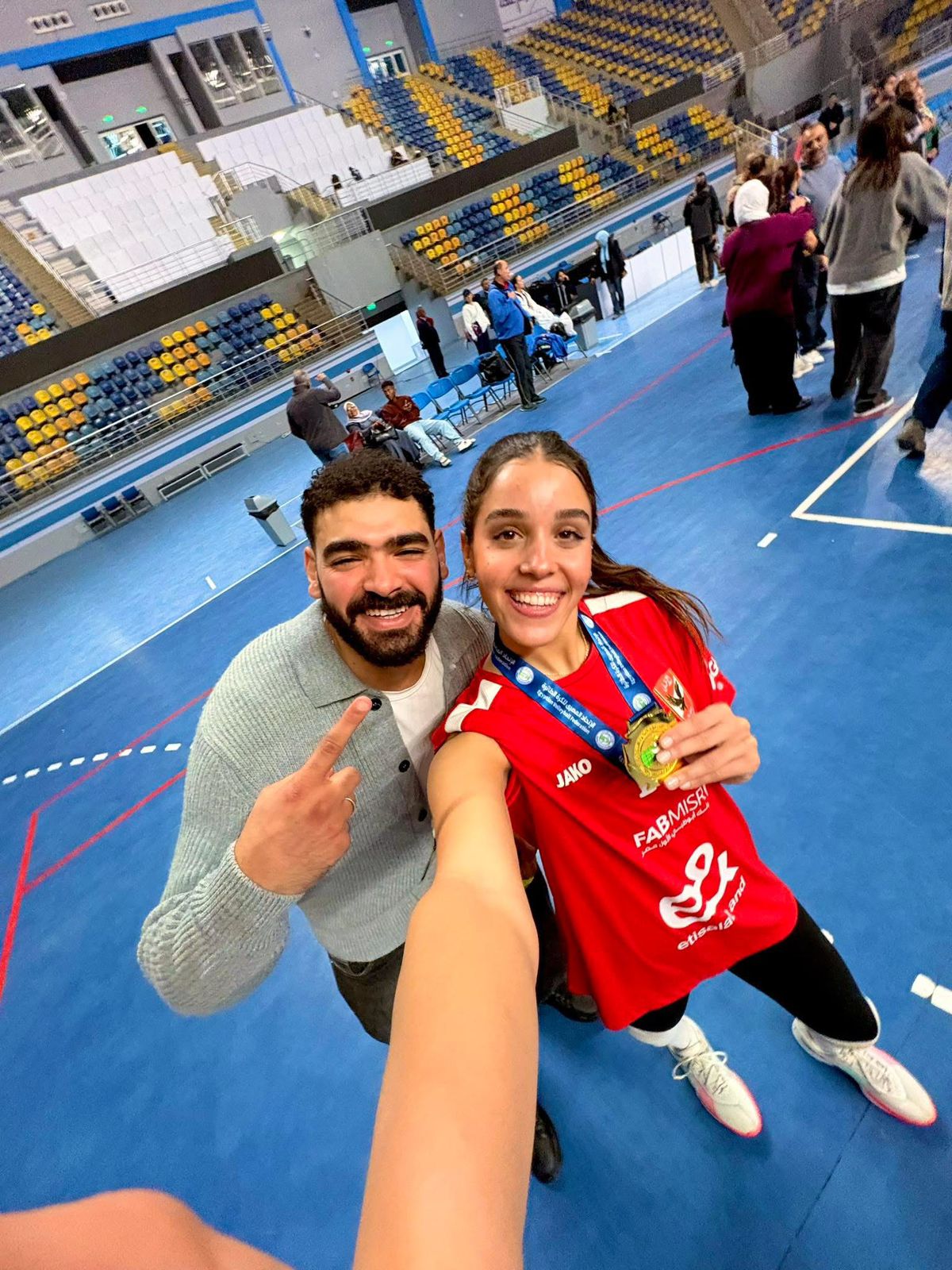 كما حرص محمد الحسينى نجم الكرة الطائرة السابق فى الأهلى و طلائع الجيش لنصفه الحلو هدير عوض لاعبة فريق طائرة سبورتنج فى ختام السوبر و التى حصلت خلاله على المركز الثانى و الميدالية الفضية .