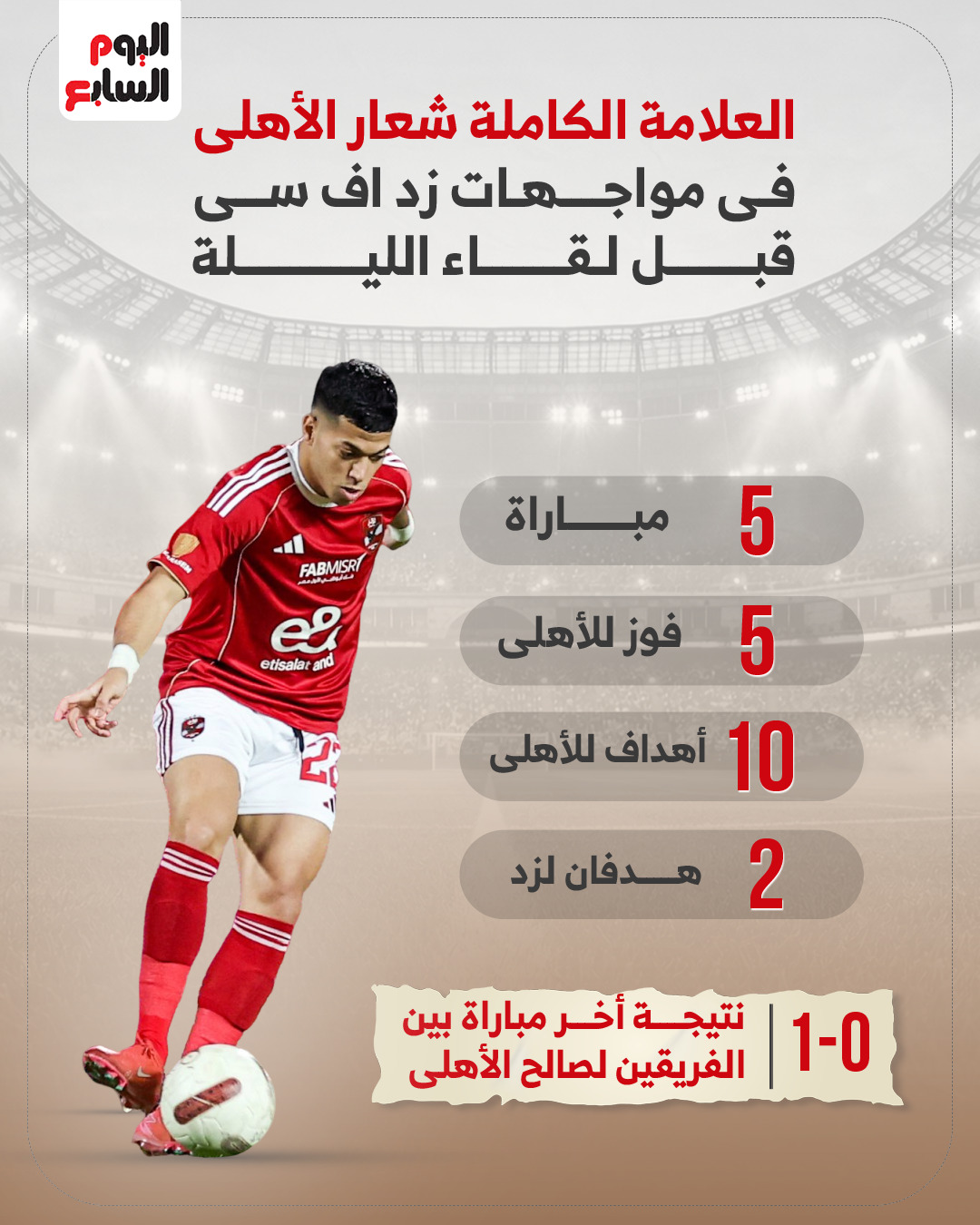 يترقب عشاق الساحرة المستديرة دقات التاسعة والنصف مساء اليوم، السبت، لمتابعة اللقاء المهم الذى يجمع النادى الأهلى مع زد إف سى باستاد القاهرة الدولى، ضمن منافسات الجولة العشرين لمسابقة الدوري المصري.