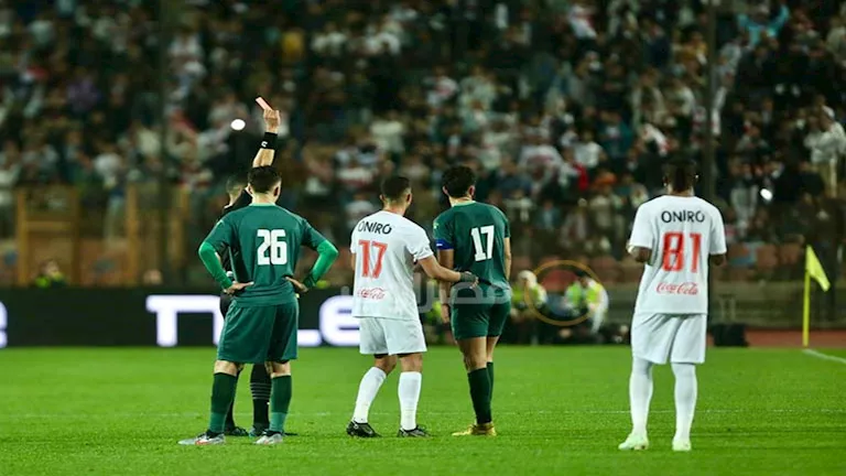 الدقيقة45: طرد محمد شحاتة لاعب الزمالك