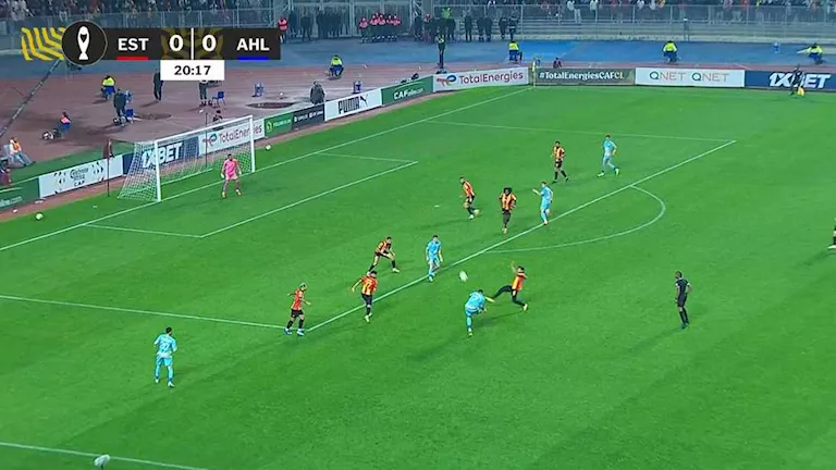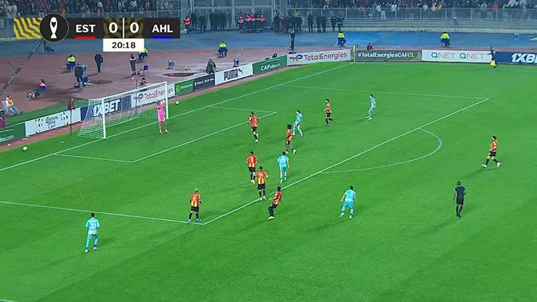 الدقيقة 39: عرضية من إمام عاشور يبعدها دفاع الترجي التونسي