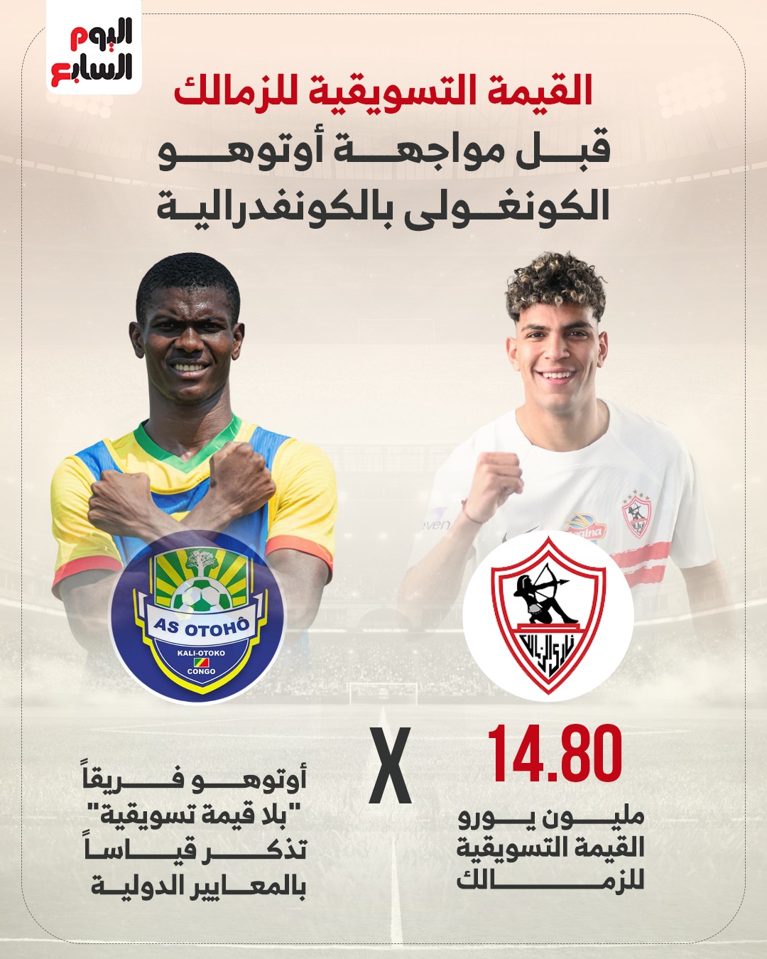 وتبلغ القيمة التسويقية للزمالك 14.80 مليون يورو، بينما أوتوهو فريقاً "بلا قيمة تسويقية" تذكر قياساً بالمعايير الدولية.