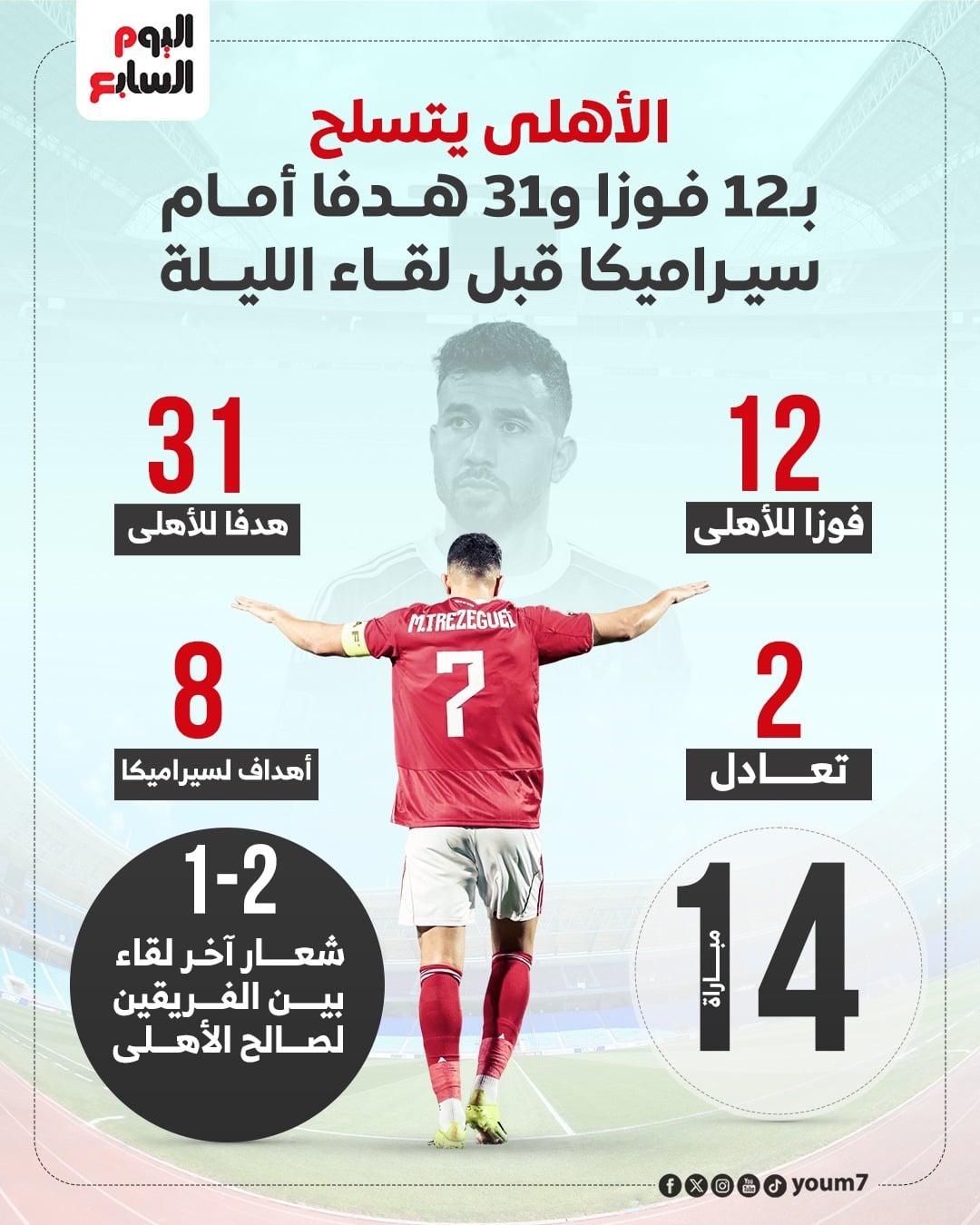 الأهلى يتسلح بـ 12 فوز و 31 هدف أمام سيراميكا قبل لقاء الليلة.. إنفو جراف