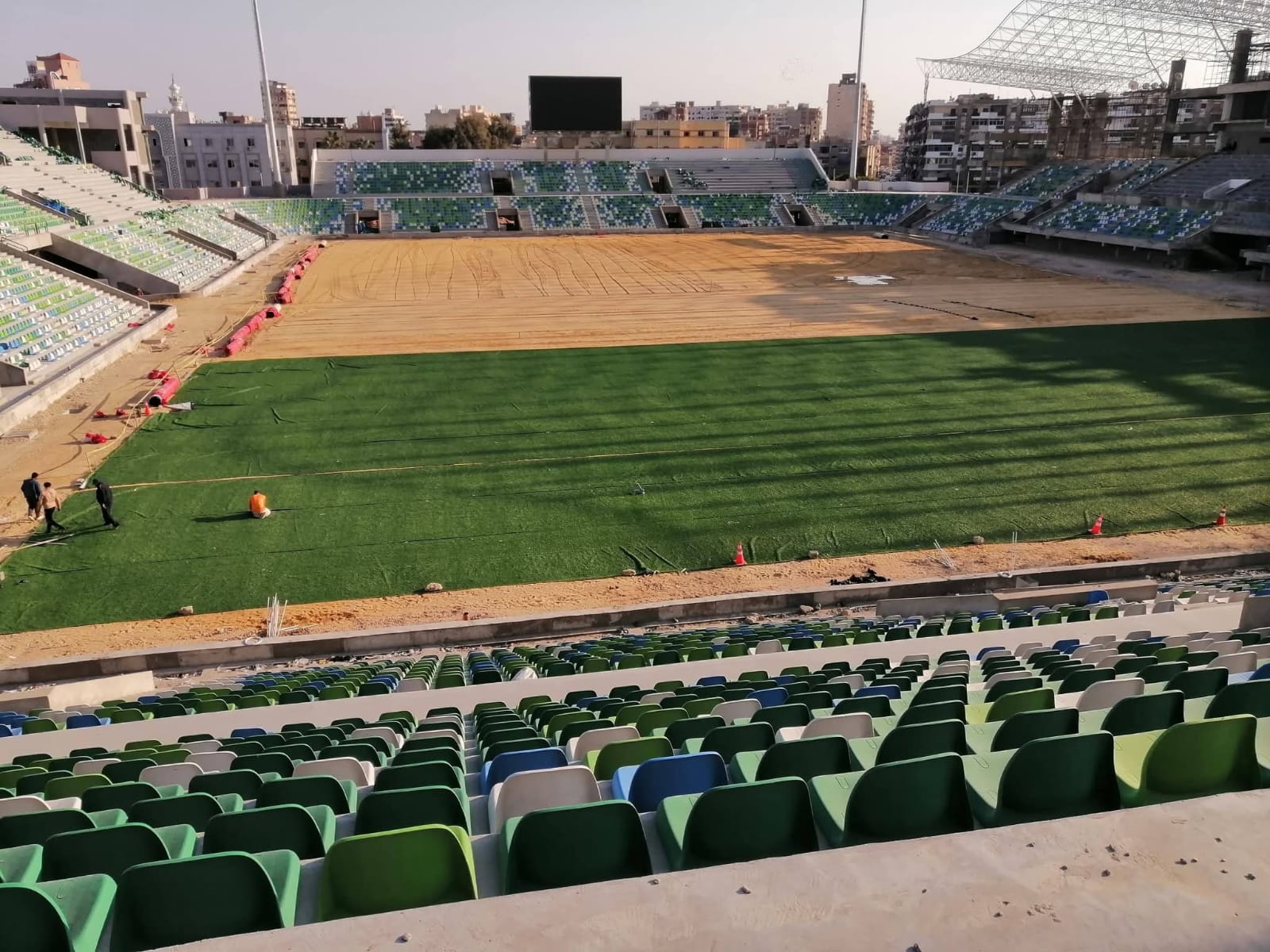 شهدت الأيام القليلة الماضية، تقدماً ملحوظاً في الأعمال الانشائية باستاد النادي المصري بمدينة بورسعيد، حيث من المقرر أن يتم الانتهاء من فرد الطبقة الأولى من النجيلة غداً الجمعة، على أن يتم زراعة بذور النجيلة الطبيعية في المرحلة التالية، كما تم تركيب الكراسي تدريجياً، واستكمال العمل في المظلة الخارجية، بالإضافة إلى استكمال أعمال المرافق وكابلات الكهرباء وشبكة الصرف الصحي.