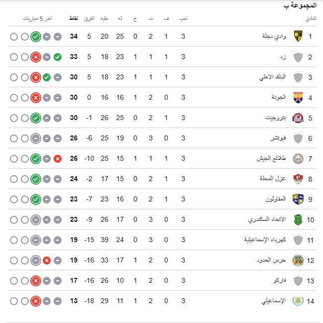 ترتيب مجموعة الهبوط بالدوري قبل الجولة الرابعة.. وادي دجلة فى الصدارة