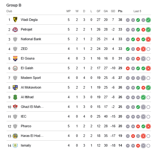 وجاء جدول ترتيب مجموعة الهبوط في الدوري المصري كالتالي: