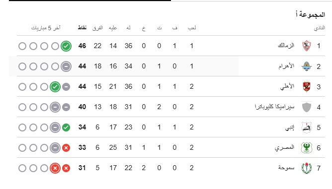 ـ حقق فريق الزمالك فوزاً ثميناً في الدور الأول على بيراميدز بهدف نظيف، لكنه خسر أيضاً من الأهلي بهدفين مقابل هدف.
