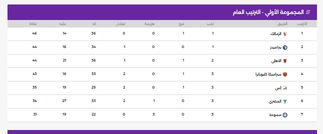 ترتيب مجموعة التتويج بلقب الدوري المصري قبل مباراة الزمالك وبيراميدز