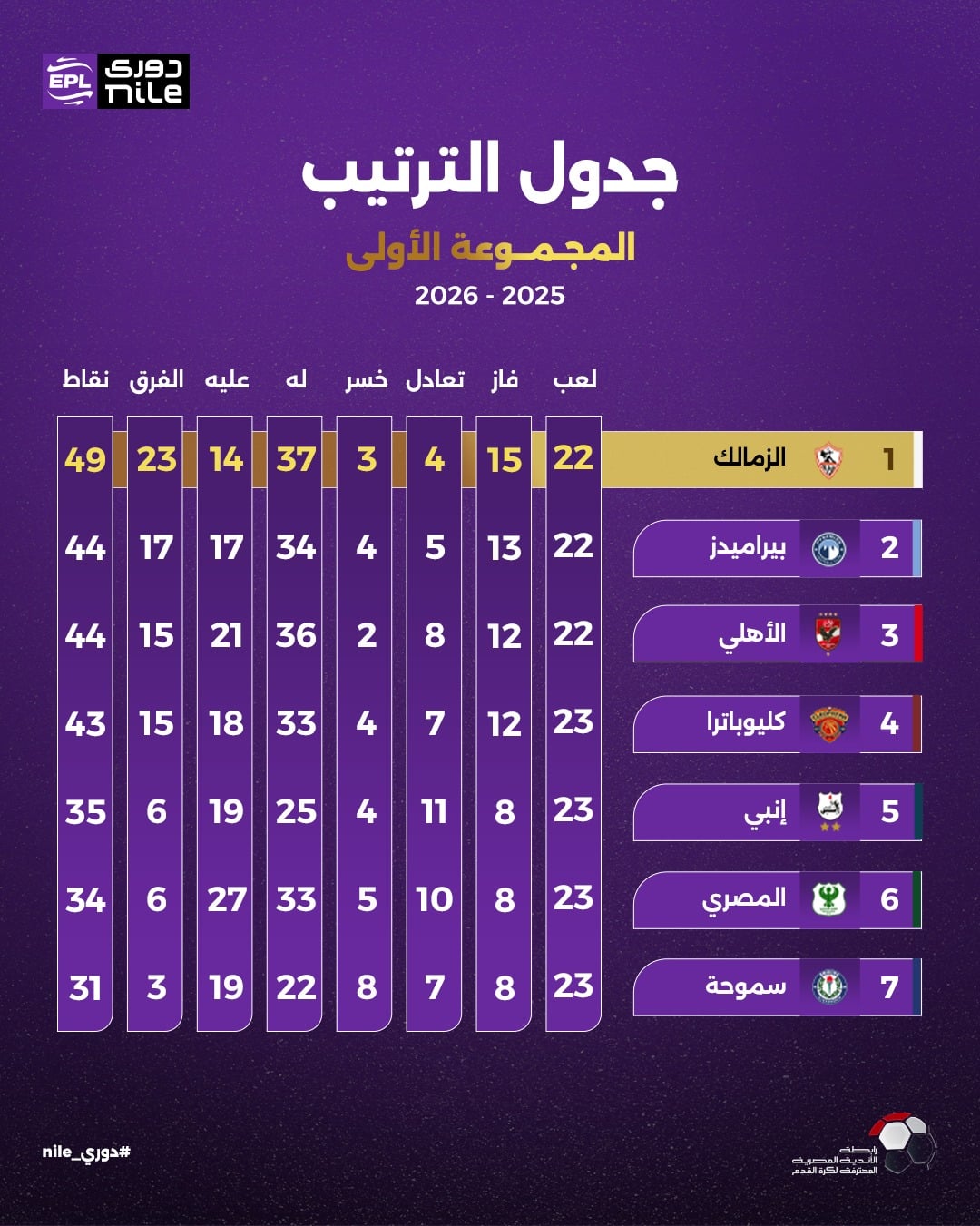 جدول ترتيب الدوري المصري الممتاز