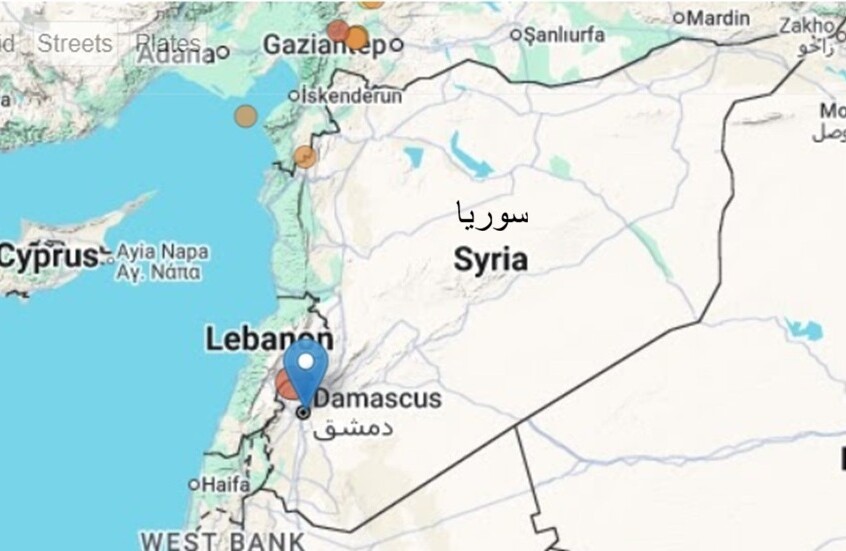 وضرب الزلزال منطقة تبعد 34 كيلومترا (21 ميلا) عن دمشق في وقت متأخر من عصر يوم الاثنين 26 يناير.