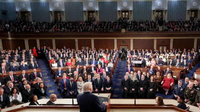 واعتبر ترامب في خطابه، الذي تخلف عن حضوره نحو 30 نائباً ديمقراطياً، أن الاقتصاد الأمريكي "ينطلق بزخم غير مسبوق".