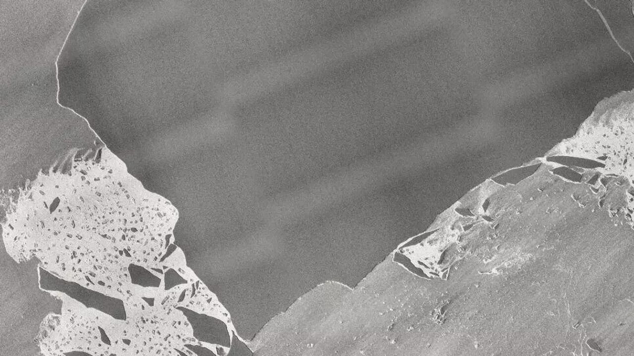 التقط القمر الصناعي الروسي الراداري "كوندور-إف كيه إيه" صورة لجبل جليدي مكسور وهو ينجرف في المحيط الأطلسي.