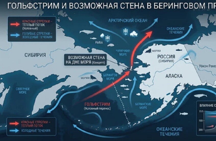 رجّح علماء مناخ أن تشييد جدار ضخم في قاع مضيق بيرينغ، بارتفاع يصل إلى نحو 59 مترا وطول يقارب 80 كيلومترا، قد يساعد في تعزيز استقرار نظام التيارات في المحيط الأطلسي.