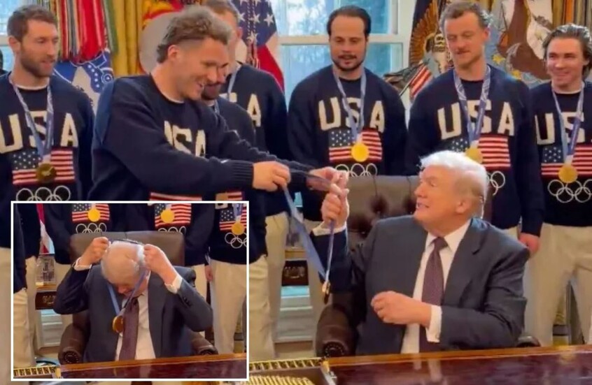 ارتدى الرئيس الأمريكي دونالد ترامب الميدالية الذهبية لأولمبياد 2026، التي سلمه إياها نجم هوكي الجليد ماثيو تكاشوك، مازحا بأنه لن يعيدها.