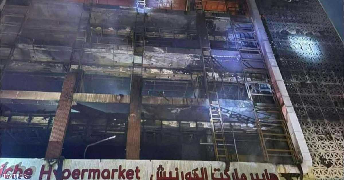 ونشر العديد من المواطنين، على وسائل التواصل الاجتماعي، صورا ولقطات فيديو للحريق الذي نشب في " هايبرماركت الكورنيش".