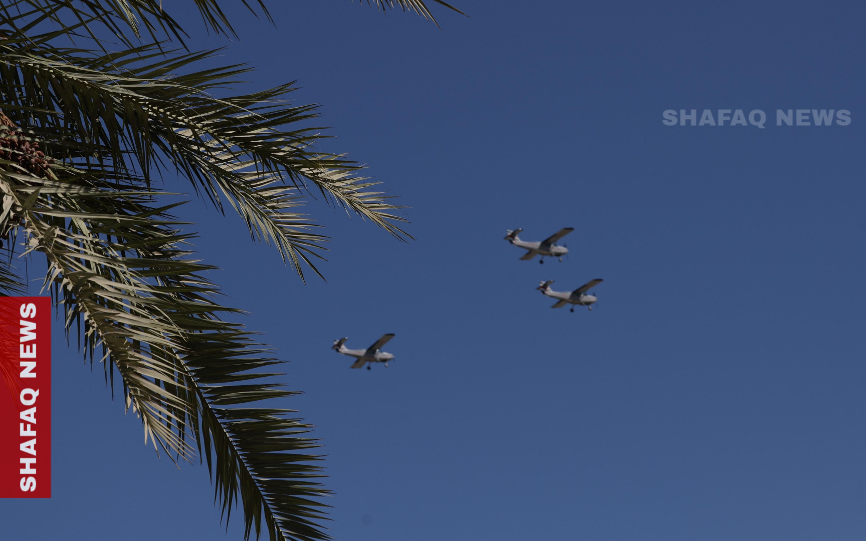 زيّنت منذ صباح يوم الجمعة، وحتى ساعات المساء الأولى، أسراب من الطائرات العراقية، سماء بغداد وتحديداً ساحة الاحتفالات وسط العاصمة ومناطقها القريبة، مسجلة مشاركة فاعلة في الاحتفال بالعيد الوطني العراقي.