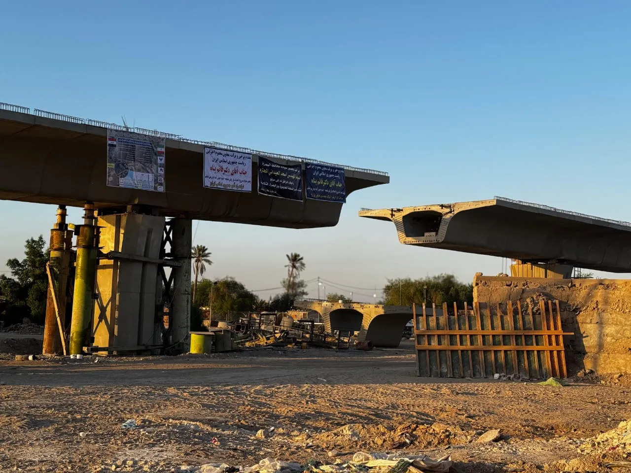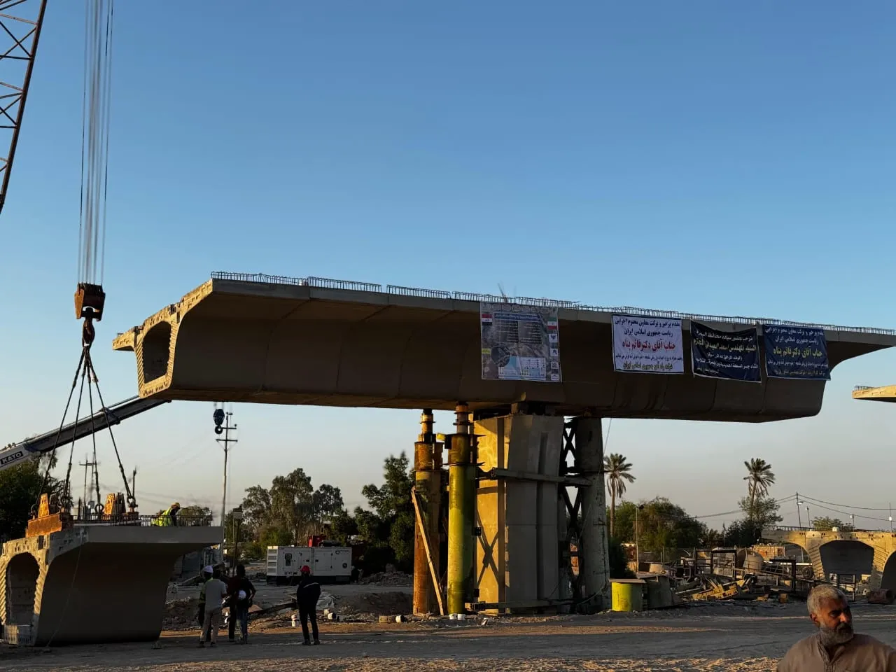وبحسب المراسل، فقد تابع محافظ البصرة والمساعد التنفيذي للرئيس الإيراني الأعمال في الجسر الرابط بين قضاء شط العرب ومركز المحافظة، الذي هو من تنفيذ الحكومة الإيرانية ضمن مشروع الربط السككي.