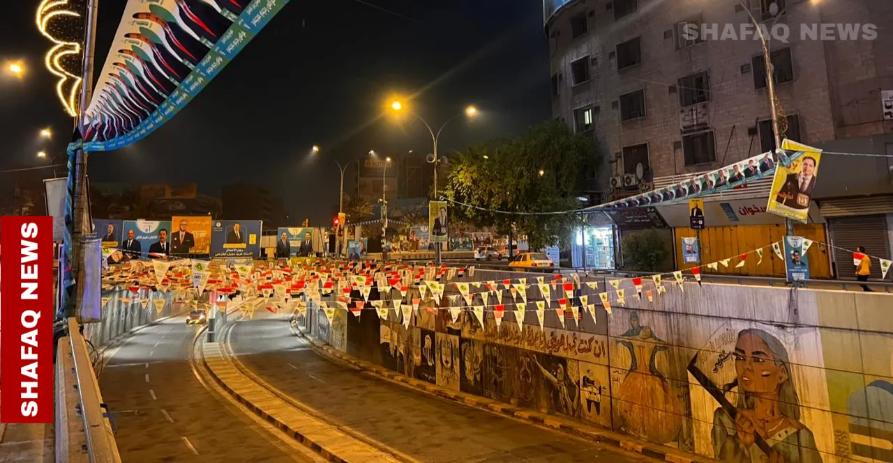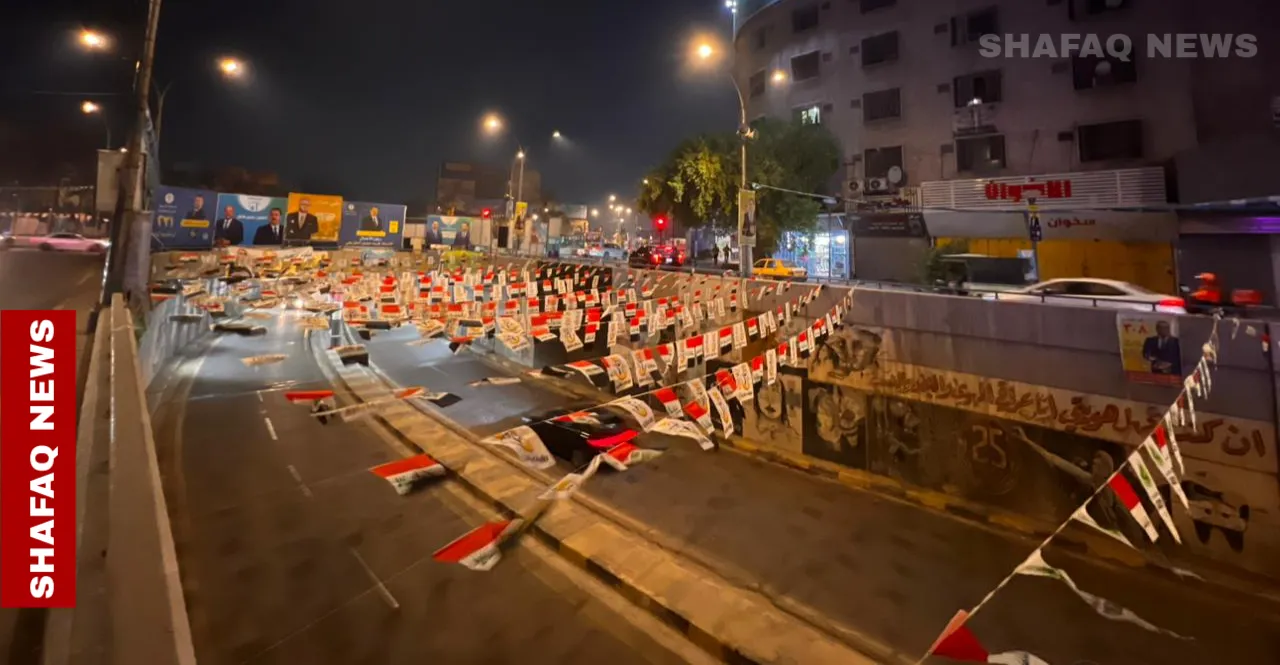 وأظهرت صور خاصة بوكالة شفق نيوز، انتشار الأعلام العراقية في عدد من شوارع مركز العاصمة وأنفاقها، إلى جانب أعلام بعض القوى السياسية ولافتات المرشحين الدعائية.