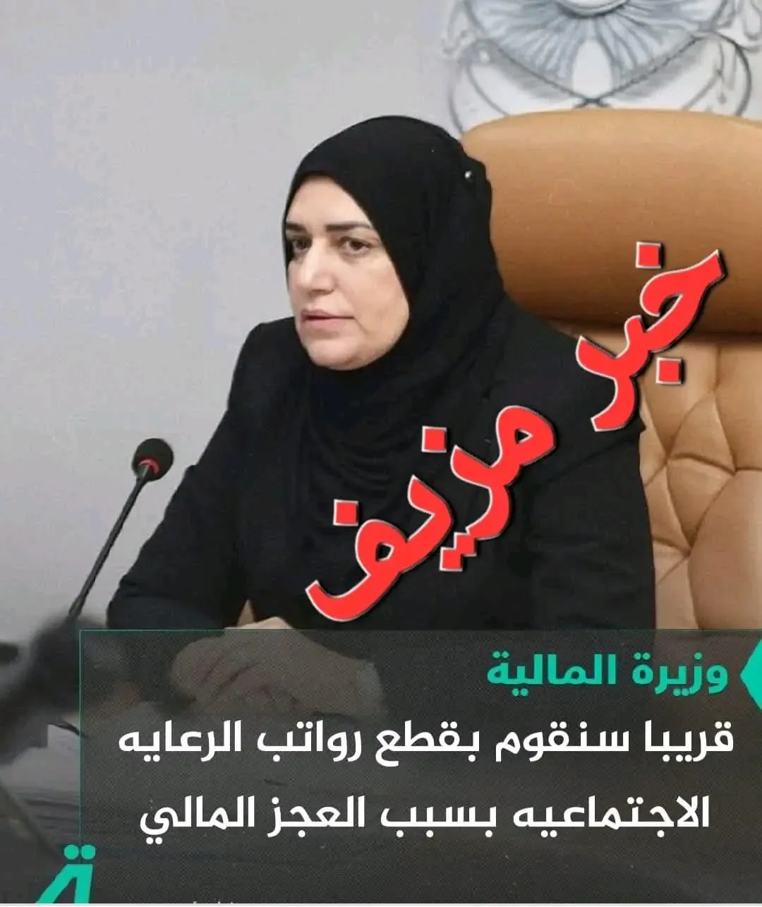 وكانت بعض صفحات التواصل الاجتماعي في العراق تداولت منشوراً منسوباً لوزيرة المالية طيف سامي جاء فيه ما نصه: "قريباً سنقوم بقطع رواتب الرعاية الاجتماعية بسبب العجز المالي"، وهو ما نفته الوزارة في البيان أعلاه.
