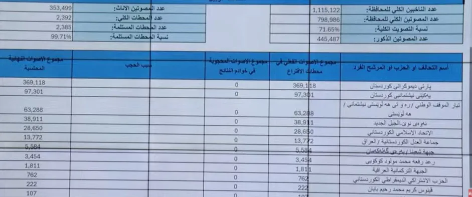 أعلنت مفوضية الانتخابات، يوم الاربعاء، تصدر الحزب الديمقراطي الكوردستاني لنتائج محافظة أربيل.