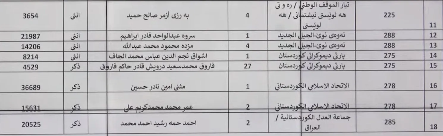أعلنت المفوضية العليا المستقلة للانتخابات في العراق، مساء اليوم الاثنين، عن النتائج النهائية للانتخابات التشريعية، وفيها تصدر عن محافظة أربيل ريبوار هادي عن الحزب الديمقراطي الكوردستاني بحصوله على 31 ألف صوت.