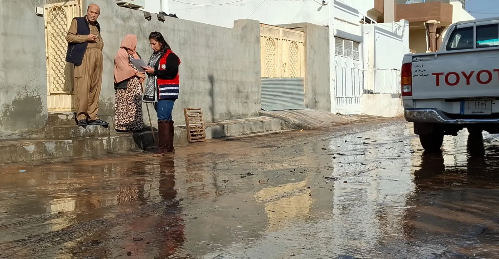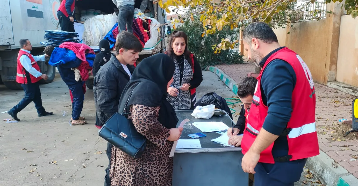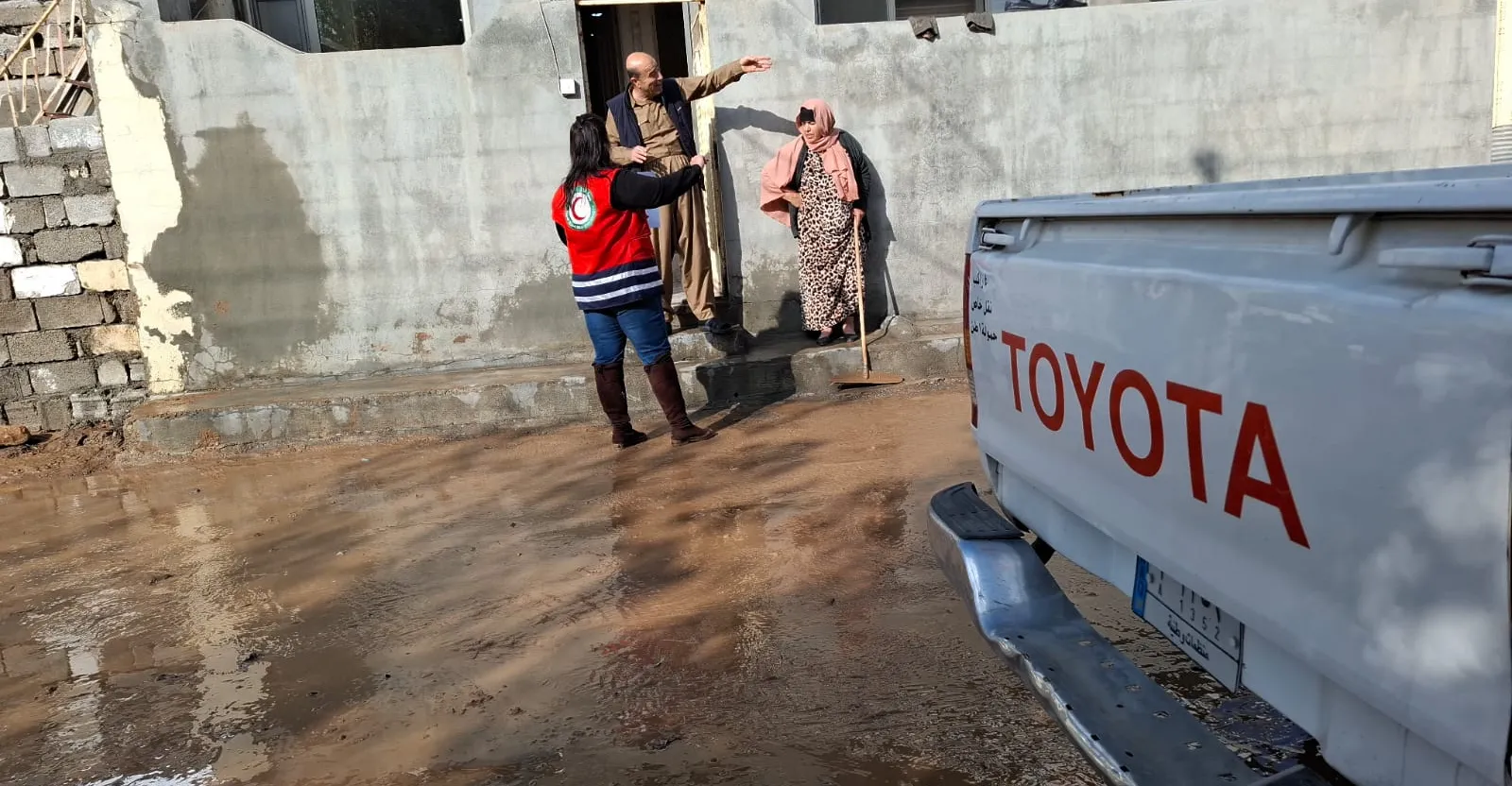 الهلال الأحمر العراقي يوزع مواد غذائية واغاثية لمتضرري السيول في السليمانية وكركوك
