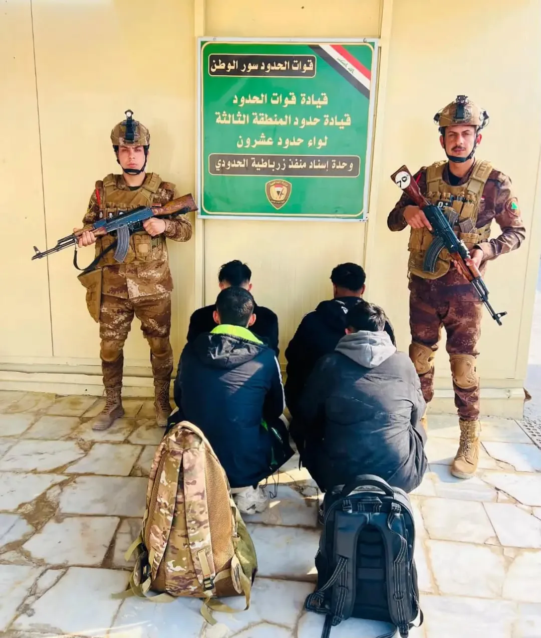 وختاماً مع قيادة قوات الحدود العراقية حيث أعلنت في بيان ورد للوكالة القبض على خمسة متسللين من جنسيات آسيوية حاولوا اجتياز الحدود بطريقة غير شرعية ضمن الحدود الإدارية لمحافظة واسط، وتم تنظيم محضر ضبط اصولي واتخاذ الإجراءات القانونية اللازمة بحقهم".