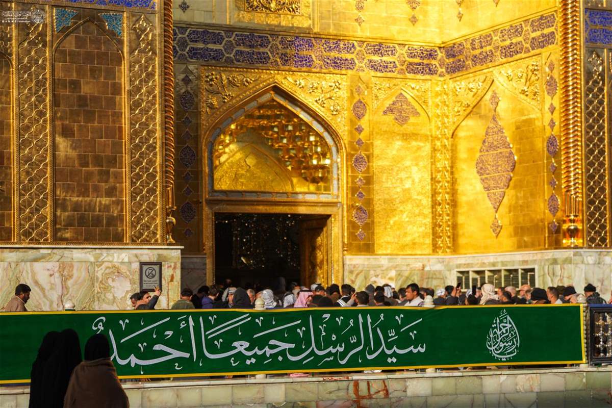 بالصور.. جموع الزائرين تحيي ذكرى المبعث النبوي الشريف عند مرقد الإمام علي (ع)
