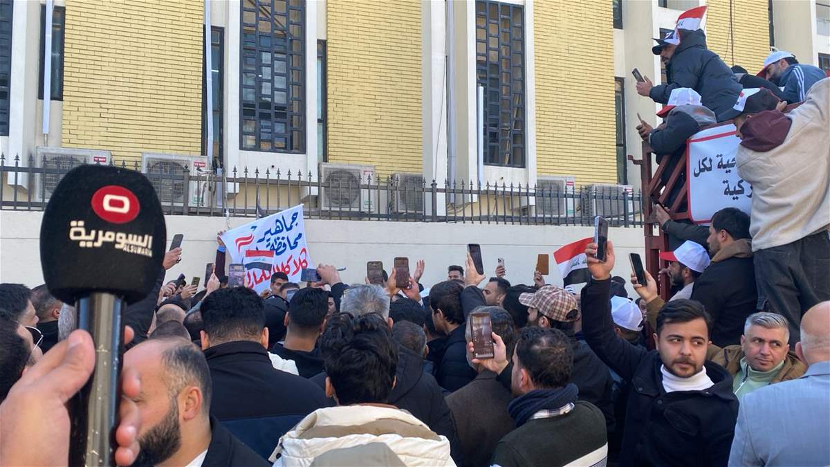 تظاهر العشرات من التجارة، اليوم الثلاثاء، امام مبنى هيئة الجمارك في بغداد .