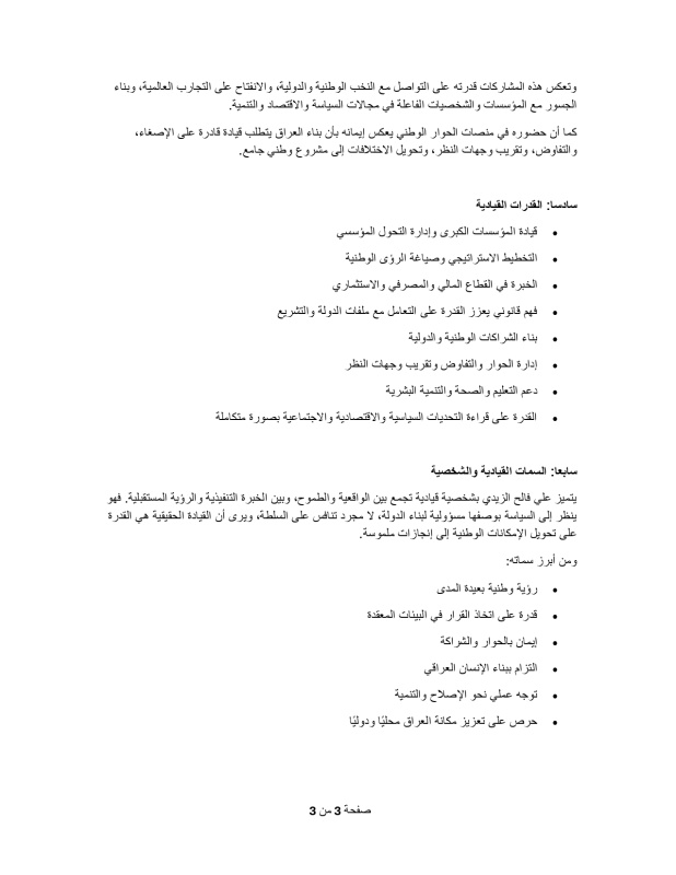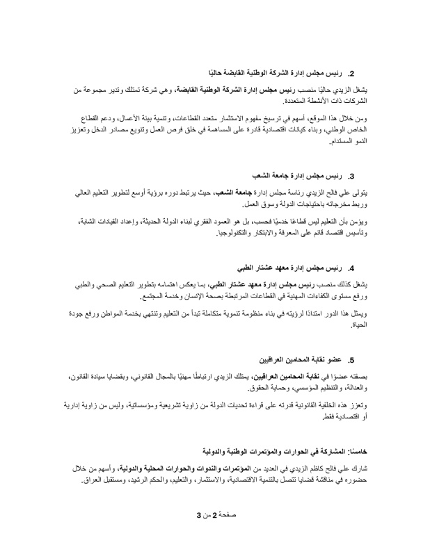 وبحسب مصادر سياسية، فإن اختيار الزيدي جاء نتيجة توافق داخل الإطار كمرشح تسوية، مع الأخذ بنظر الاعتبار قدرته على التعامل مع الملفات المعقدة، لا سيما الاقتصادية والخدمية، إضافة إلى علاقاته مع مختلف الأطراف السياسية.
