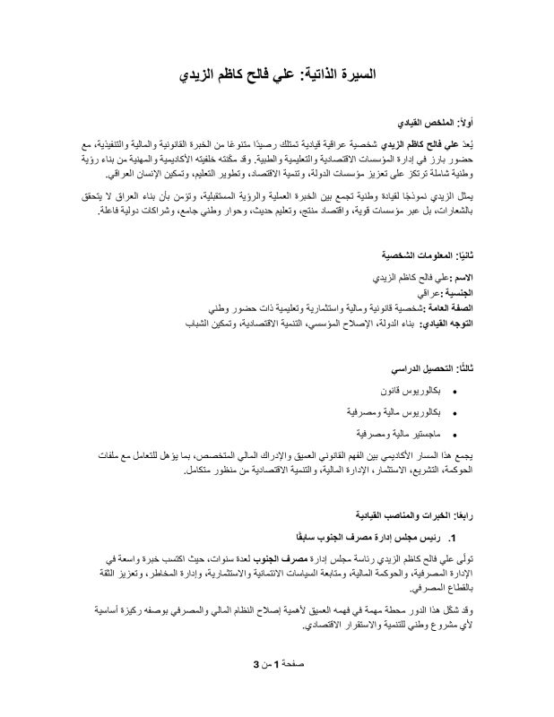 "بغداد اليوم" تنشر السيرة الذاتية لمرشح رئاسة الوزراء علي الزيدي، الذي تم ترشيحه للمنصب كمرشح تسوية من قبل قادة الإطار التنسيقي، بعد سلسلة مشاورات واجتماعات داخل قوى الإطار، بهدف التوصل إلى شخصية تحظى بقبول سياسي وتتمكن من إدارة المرحلة المقبلة.