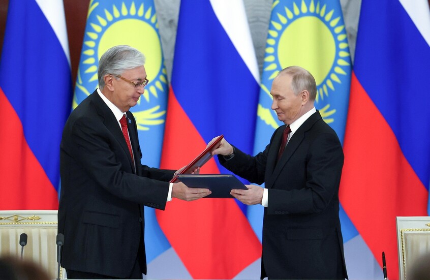 وقع الرئيس الروسي فلاديمير بوتين ونظيره الكازاخستاني قاسم جومارت توكايف إعلانا مشتركا ينقل علاقات البلدين إلى مستوى الشراكة الاستراتيجية الشاملة والتحالف.